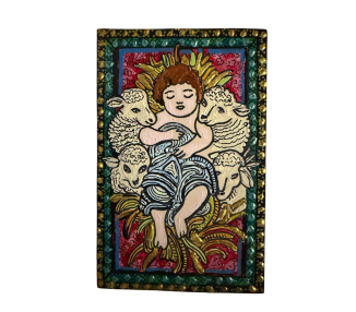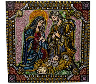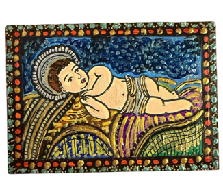 PINTURA ACRÍLICA + TINTA DE COLORES SOBRE TABLA CUADRADA DE 12 CMS.