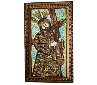 Pintura acrílica + tinta de colores sobre lienzo de forma de corazón de 30 cms de alto.