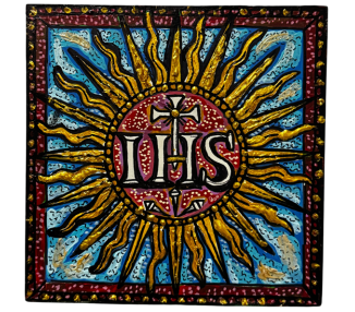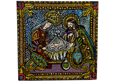PINTURA ACRÍLICA + TINTA DE COLORES SOBRE TABLA CUADRADA DE 12 CMS.