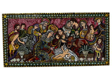 PINTURA ACRÍLICA + TINTA DE COLORES SOBRE TABLA RECTANGULAR DE 20 X 40 CMS.