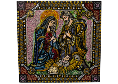 PINTURA ACRÍLICA + TINTA DE COLORES SOBRE TABLA CUADRADA DE 17 X 18 CMS.