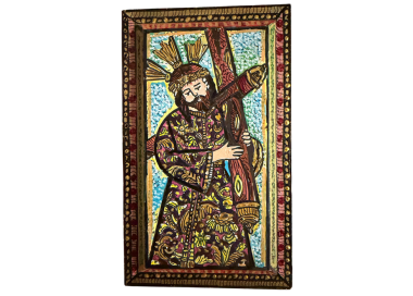PINTURA ACRÍLICA + TINTA DE COLORES SOBRE PIEL DE PANDERA DE 14 CMS DE DIÁMETRO.