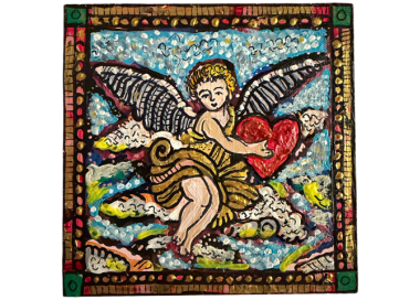 PINTURA ACRÍLICA + TINTA DE COLORES SOBRE TABLA CUADRADA DE 12 CMS.